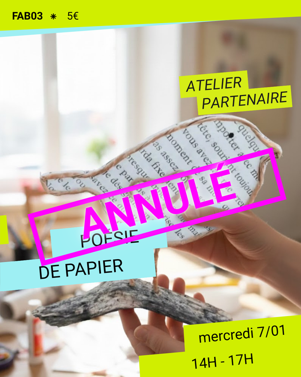 ANNULÉ : ATELIER POÉSIE DE PAPIER